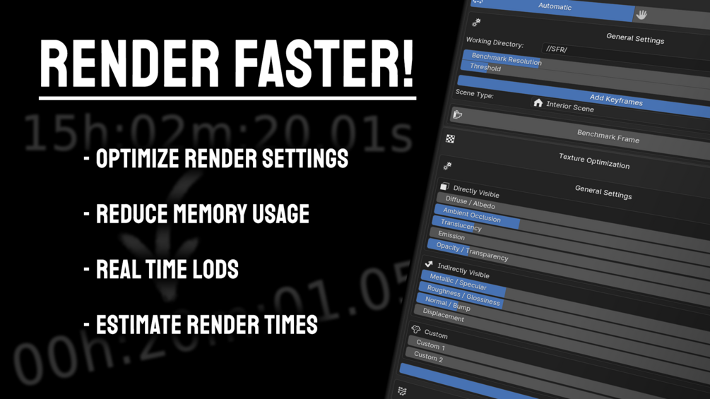 SFR-Automatic benchmarks your scene and detects the best settings for your scene, for fastest rendering at highest quality!