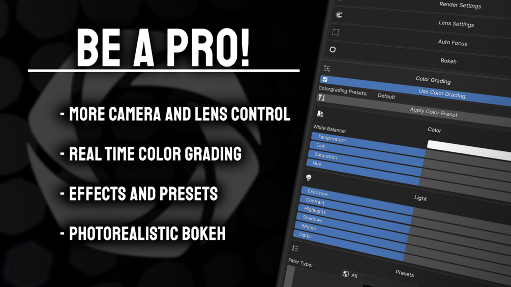 Quickly edit your images with colorgrading and fancy effects, as well as giving you more control over the camera! -